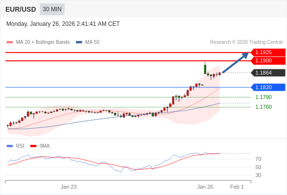交易策略: 在 1.1820 之上,看涨,目标价位为 1.1900 ,然后为 1.1925 。