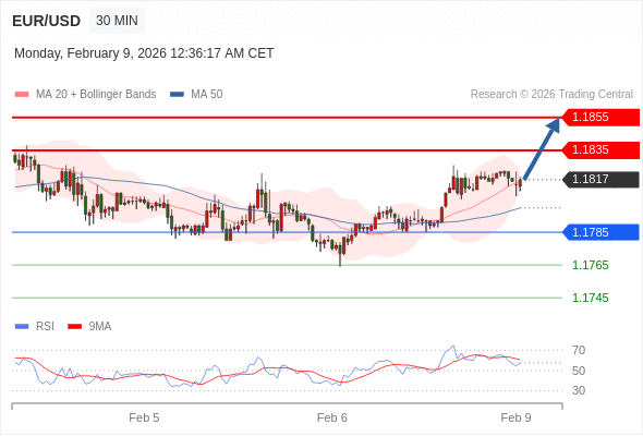 交易策略: 在 1.1785 之上,看涨,目标价位为 1.1835 ,然后为 1.1855。